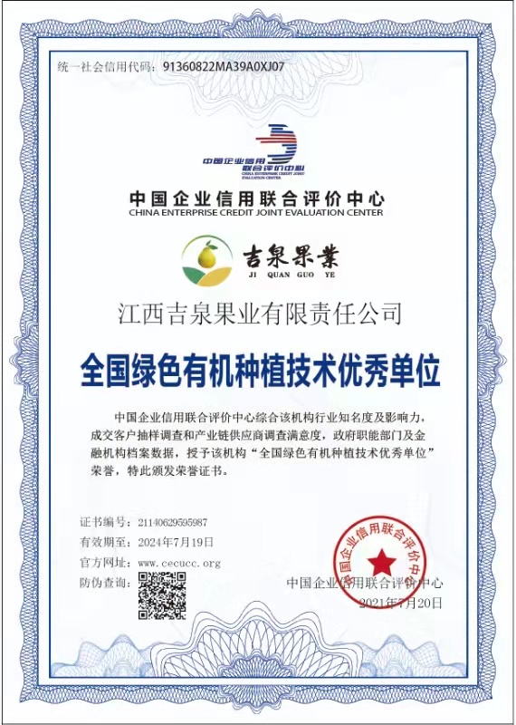 公司被評定全國綠色有機種植技術優秀單位