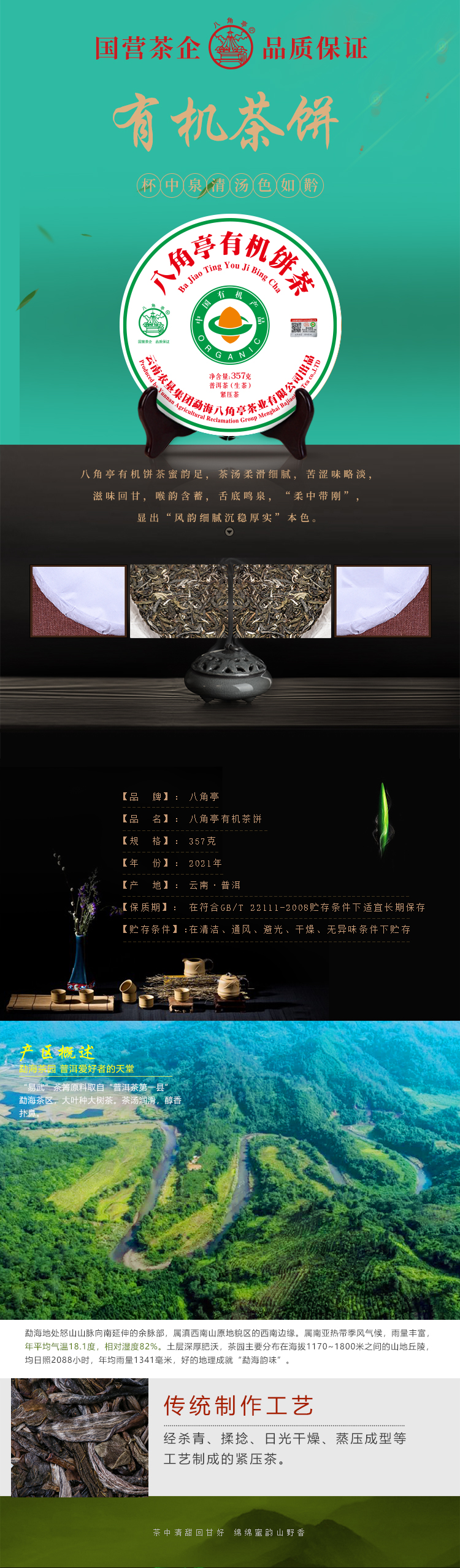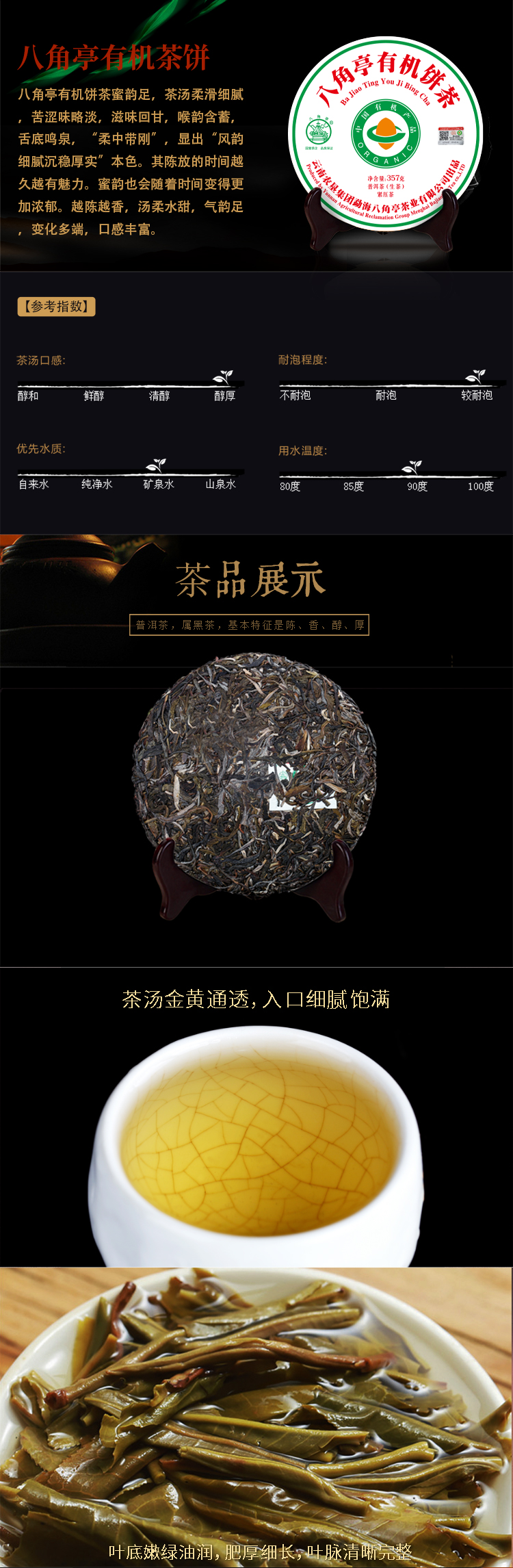 八角亭有機(jī)茶生茶(2020年)