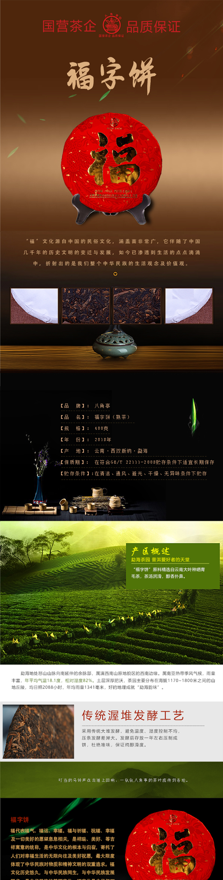 ??——八角亭茶業(yè)公司:經(jīng)營(yíng)方式為生產(chǎn)加工、銷售,主營(yíng)普洱茶、緊壓茶、兼營(yíng)毛茶收購(gòu)。目前以生產(chǎn)、加工、銷售“八角亭”系列普洱茶為主,是云南省農(nóng)業(yè)產(chǎn)業(yè)化龍頭企業(yè)。“八角亭”商標(biāo)獲得云南省著名商標(biāo),“八角亭”牌普洱茶榮獲云南省名牌產(chǎn)品和云南省名牌農(nóng)產(chǎn)品。已先后通過(guò)工業(yè)生產(chǎn)許可證、ISQ9001與HCCP認(rèn)證、云茶牌認(rèn)證(YC)等項(xiàng)工作,在歷次專業(yè)評(píng)比中“八角亭”普洱茶多次獲得特等金獎(jiǎng)和金獎(jiǎng)。2017年5月,“八角亭”牌老班章茶葉獲得了有機(jī)茶資格認(rèn)證。八角亭茶業(yè)公司多次進(jìn)行了技術(shù)改造,現(xiàn)已建立了標(biāo)準(zhǔn)化生產(chǎn)車間和設(shè)備,年設(shè)計(jì)生產(chǎn)量達(dá)3000噸,是整個(gè)公司的主體核心企業(yè)。