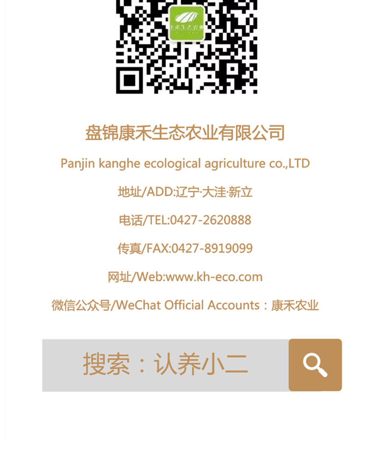 2016年3月經(jīng)大洼區(qū)人民政府研究同意、大洼區(qū)國有資產(chǎn)監(jiān)督管理局批準(zhǔn):在新立農(nóng)場注冊成立盤錦康禾生態(tài)農(nóng)業(yè)有限公司,公司性質(zhì)為國有獨(dú)資,注冊資金1000萬元。公司是采用“互聯(lián)網(wǎng)+認(rèn)養(yǎng)農(nóng)業(yè)”模式推廣農(nóng)業(yè)認(rèn)籌項目的全產(chǎn)業(yè)鏈國有企業(yè)。經(jīng)營以盤錦生態(tài)稻米為代表的“認(rèn)養(yǎng)小二”系列生態(tài)農(nóng)產(chǎn)品。